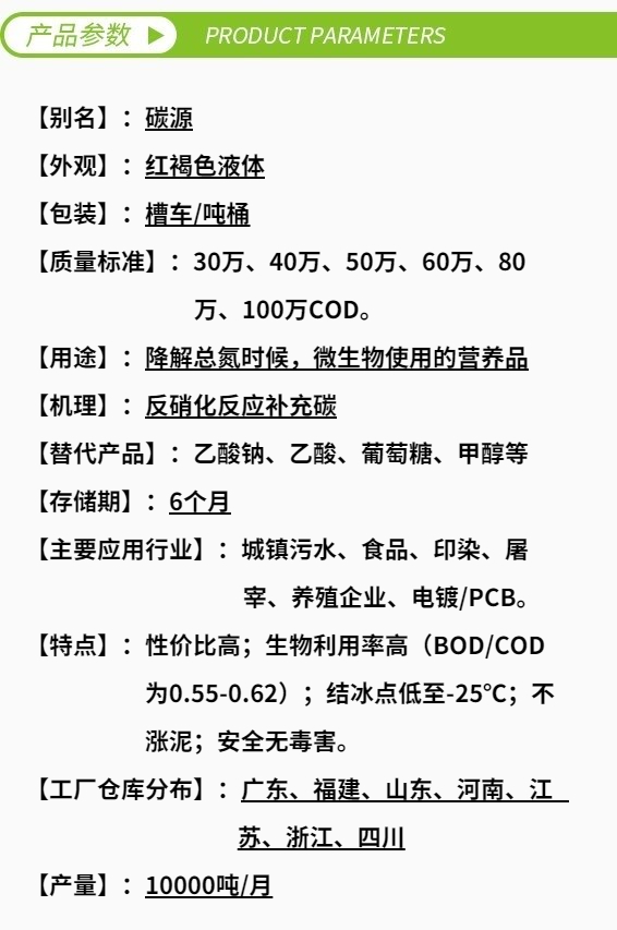 【有效COD含量高】針對(duì)反硝化細(xì)菌專一定制,性價(jià)比普遍優(yōu)于甲醇、乙醇、淀粉、葡萄糖、乙酸及乙酸鈉等傳統(tǒng)碳源;